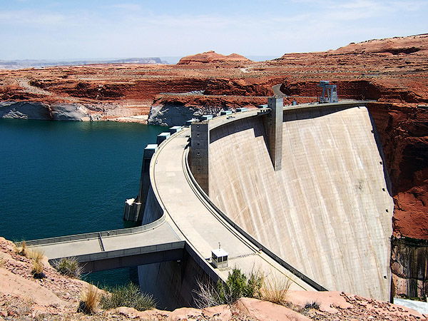 Glen Canyon Dam оказалась уменьшенной копией плотины Гувера. По самой плотине обычным людям ездить нельзя, для них рядом построили мост через каньон.