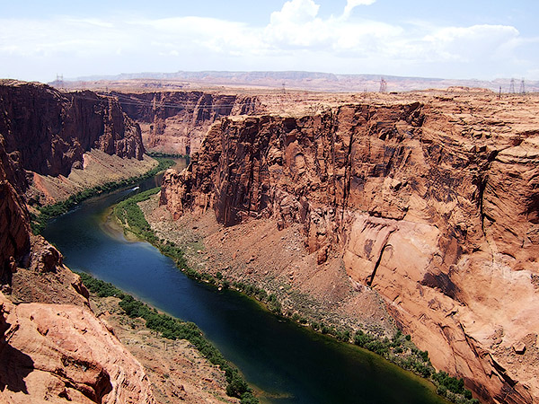 Marble Canyon можно считать началом Великого Каньона. Посреди совершенно плоской долины проходит трещина глубиной 200 метров с отвесными стенами. Внизу течёт река Колорадо.