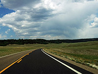 Отличия начали проявляться еще за пятьдесят миль до каньона, когда плоская пустыня вдруг сменилась холмами со смешанным лесом, в котором огромные сосны и ели соседствуют с берёзами и клёнами. Еще ближе к каньону среди леса появились прямо альпийские луга. Дорога эта, кстати, закрыта большую часть года, с октября по середину мая. Поэтому туристов на лучшей стороне каньона бывает раз в десять меньше, чем на юге.